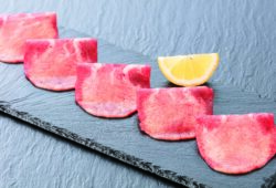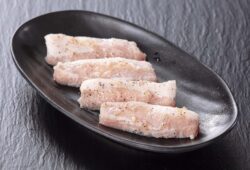 豚の横隔膜の部位で豚1頭からわずかにとれない希少部位です。しっかりとした歯ごたえがあり肉質も柔らかいです。