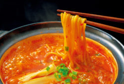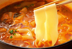 名古屋名物のきしめんは赤から鍋との相性抜群。もちもちの食感がたまりません