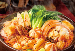 旨辛でコクのある赤からスープとごまペーストのまろやかさ、数種類の香辛料を合わせた麻辣油のシビ辛でクセになる赤から麻辣鍋が誕生しました
