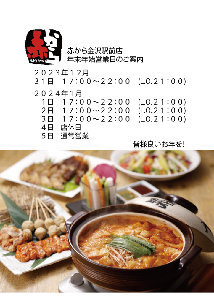 本年も赤から金沢駅前店に足を運んでいただき、ありがとうございました